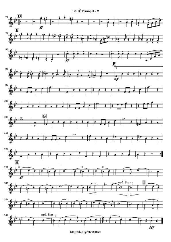 I transcribed J.P. Sousa's 'The Stars and Stripes Forever March' into trumpet ensemble (for 2 - 6 trumpets).